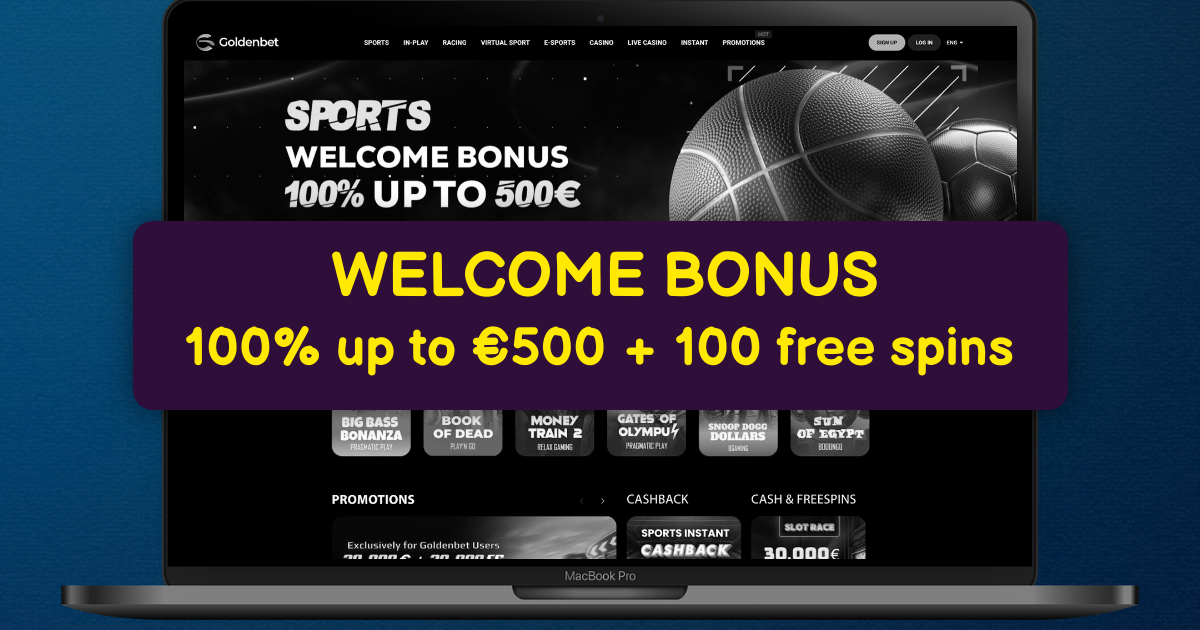 GoldenBet splits its casino welcome bonus across the first 3 deposits. Each deposit gets a 100% match up to €500, plus 100 free spins in total on Book of Witches. Each deposit requires €20, and players activate the bonus in the account area.